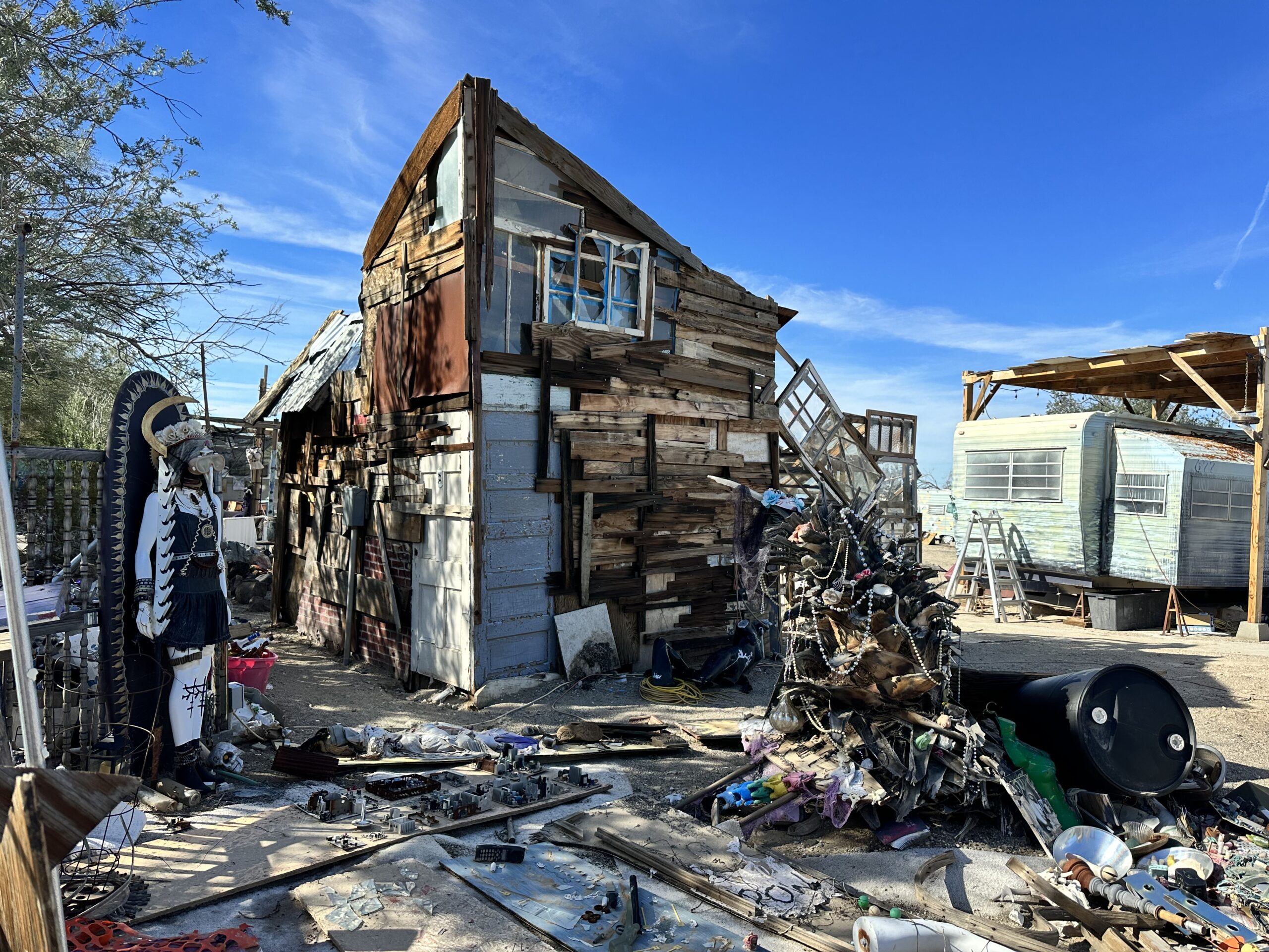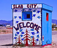 Slab City is located on the site of the former Camp Dunlap, A U/S. Marine Corps base used during World War II. After the camp was dismantled in the 1950’s, it wasn’t long before squatters began to occupy the area by using the leftover concrete slabs that once supported the military buildings to build makeshift homes and structures.  Over time, the settlement grew into what is now called Slab City. While many embrace Slab City as a place of total freedom, the reality is more complicated.  The community is largely self-regulated, with little formal oversight. However within this freedom residents must contend with the harsh realities of life on the desert. Emergency services are extremely limited.
