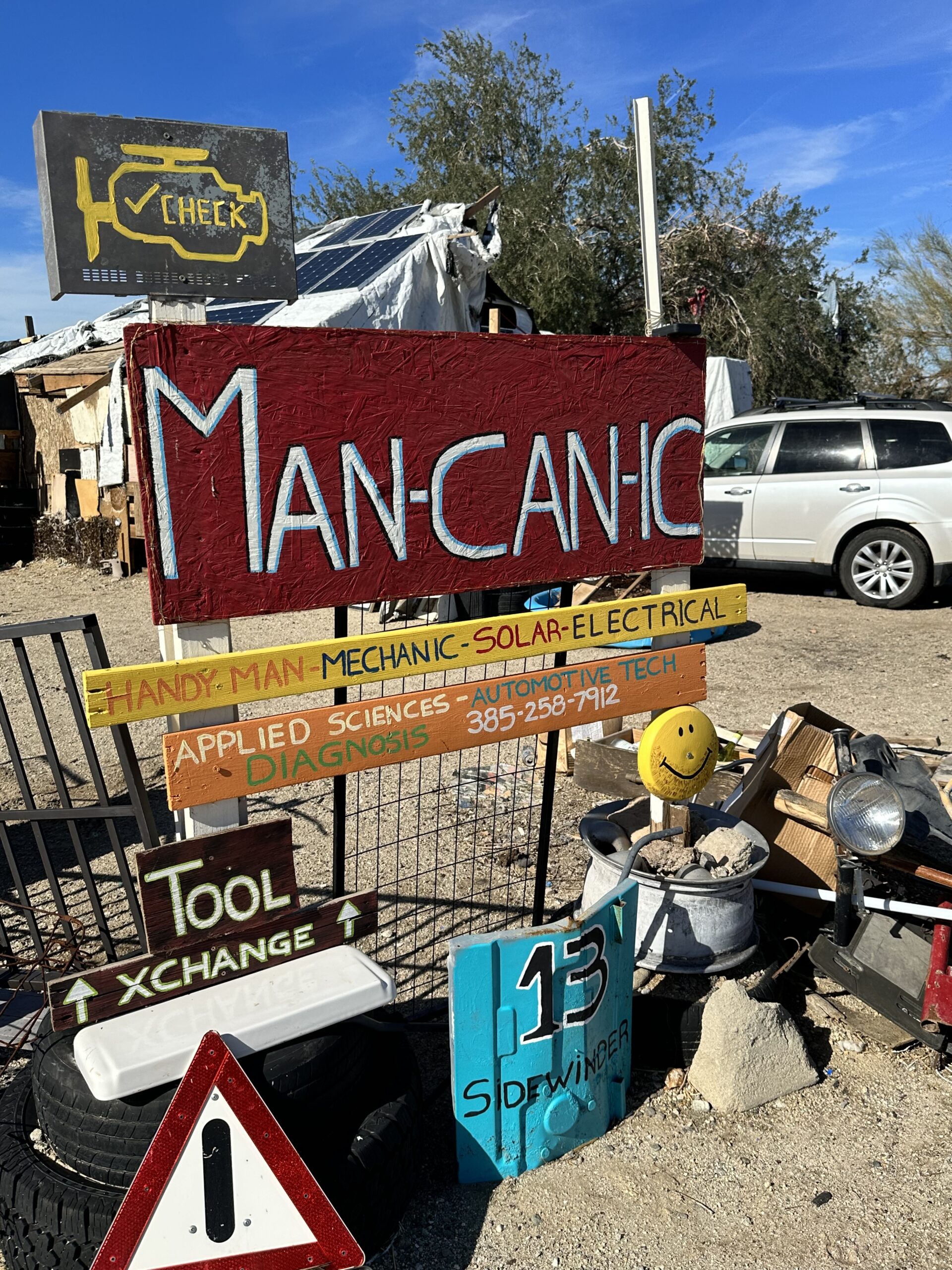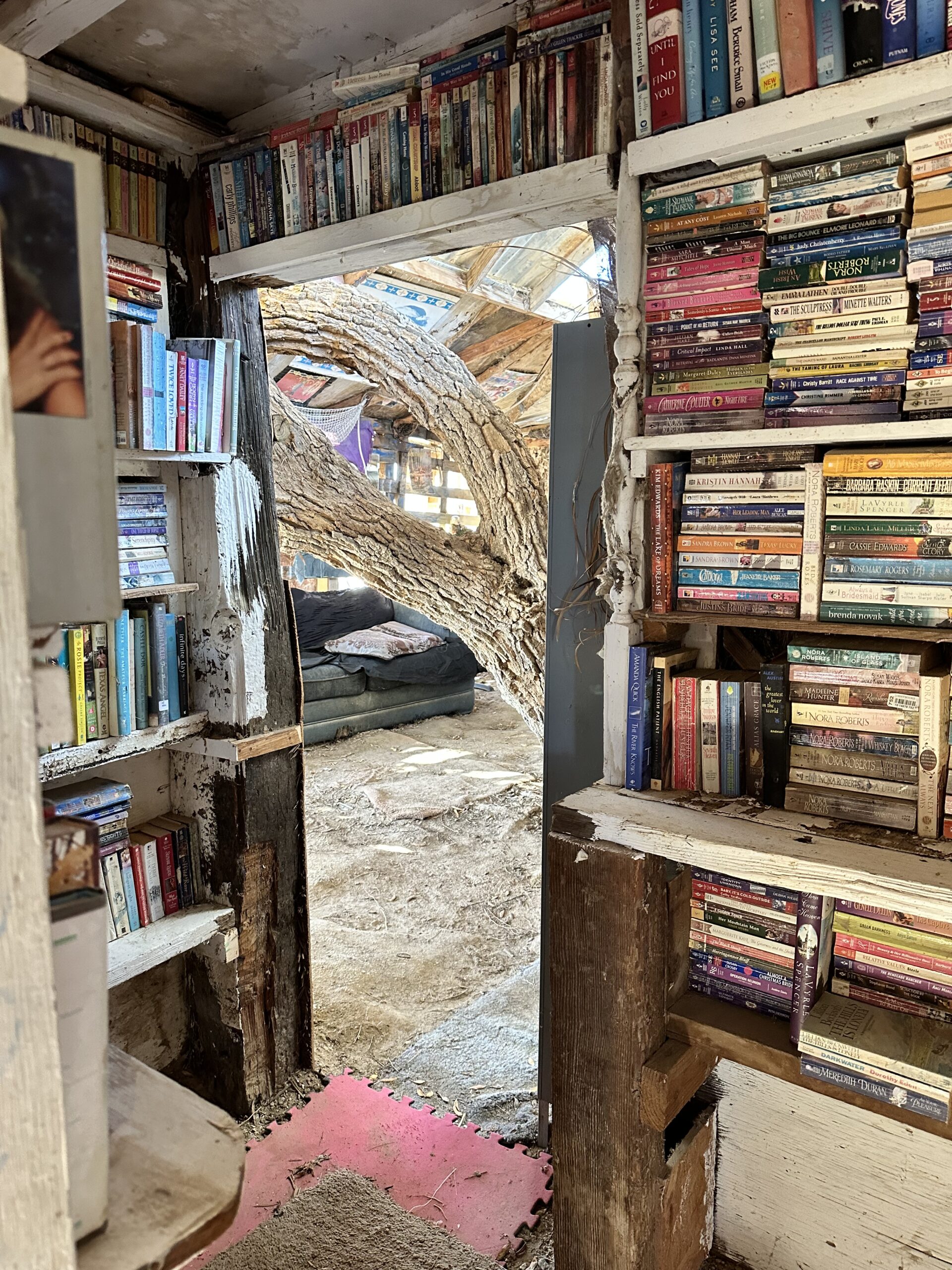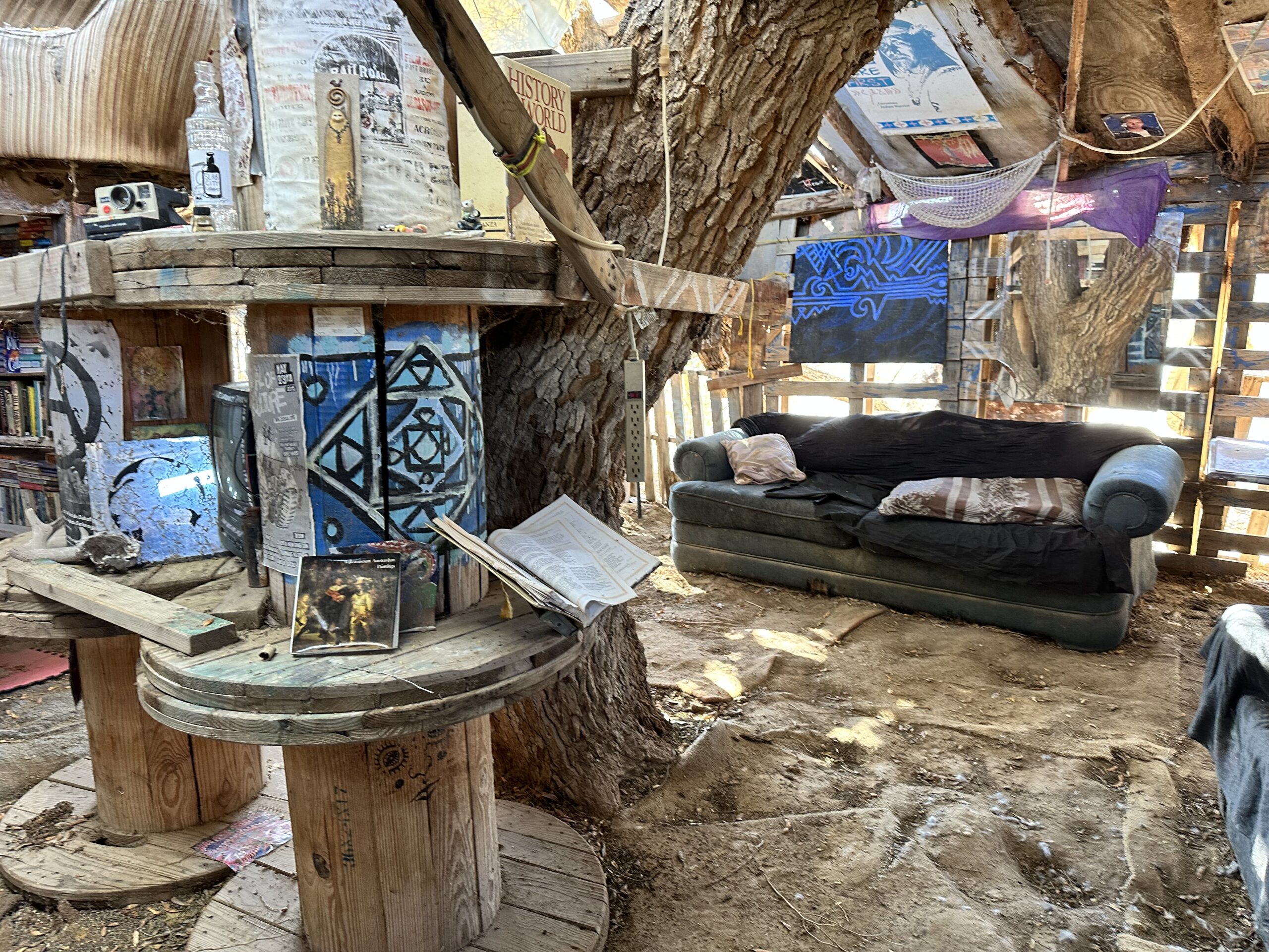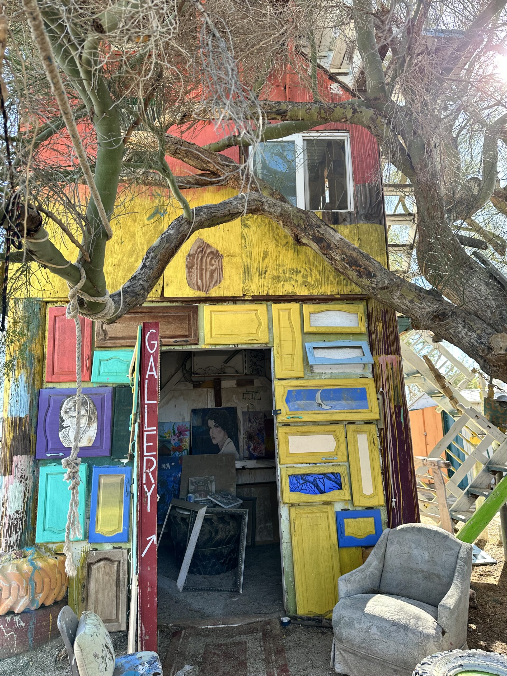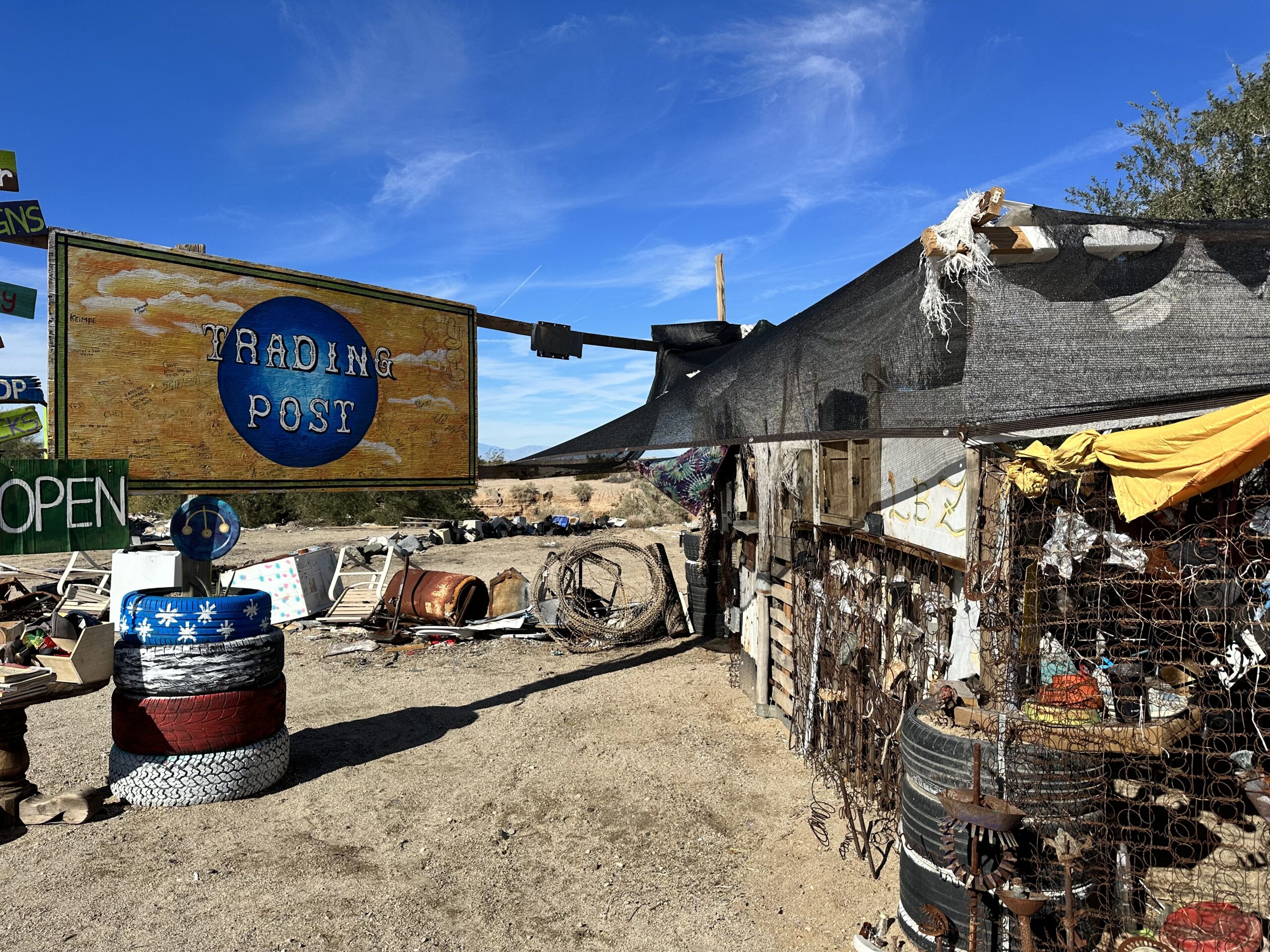 Children in Slab City primarily receive their education through nearby public school districts, with school buses from adjacent communities picking up the few children living there.  Some residents also opt for homeschooling or independent study methods given their ‘off the grid’ chosen lifestyle.   One of the most fascinating buildings in the city was their library. We were shocked at how many books were there. Older ones and some very current ones. Mainly, all received through donations from residents and the majority from visitors. We met their self-appointed librarian who wanted to bring organization to the library and has worked tirelessly to achieve that. He toured us around and we were blown away at the cataloging and ease of finding the thousands of resources. Clearly if one had the interest and capability of educating their children this was the place to do it.