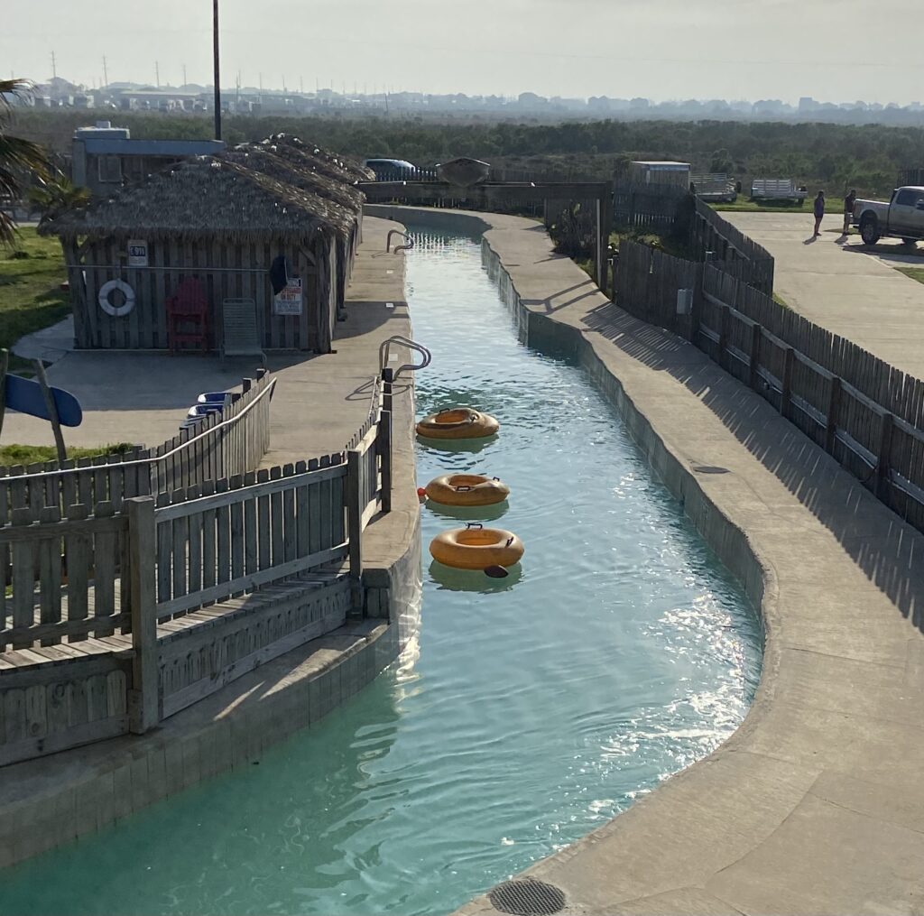 Hhm. We had already booked our campgrounds for the next several nights and had plans to take the ferry off the island versus travelling the treacherous stretch of highway 10 around Houston again. We knew we needed to get to the ferry early as there were no reservations and we wanted to guarantee ourselves a spot onboard. So decision made, we were leaving early knowing it would be a slow drive from our southwestern RV park location to the island’s northeastern ferry departure. While only 12 miles (roughly 20km) it would be a slow and precarious drive.